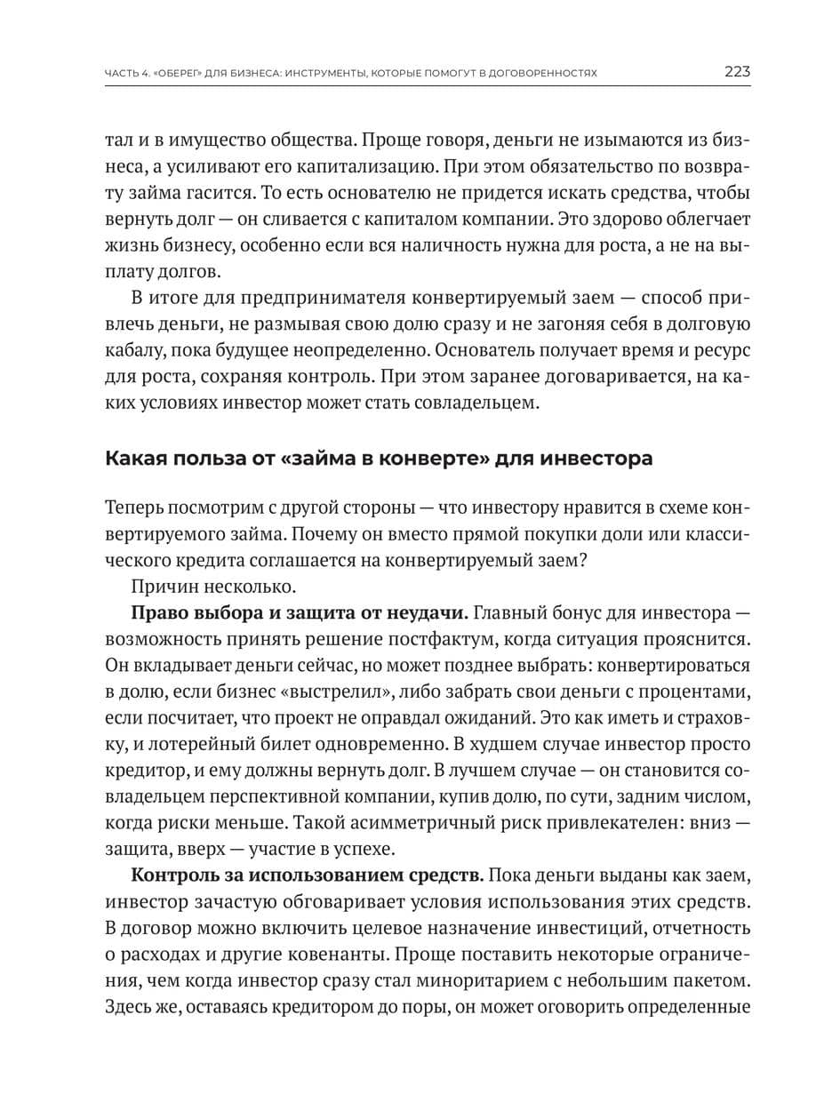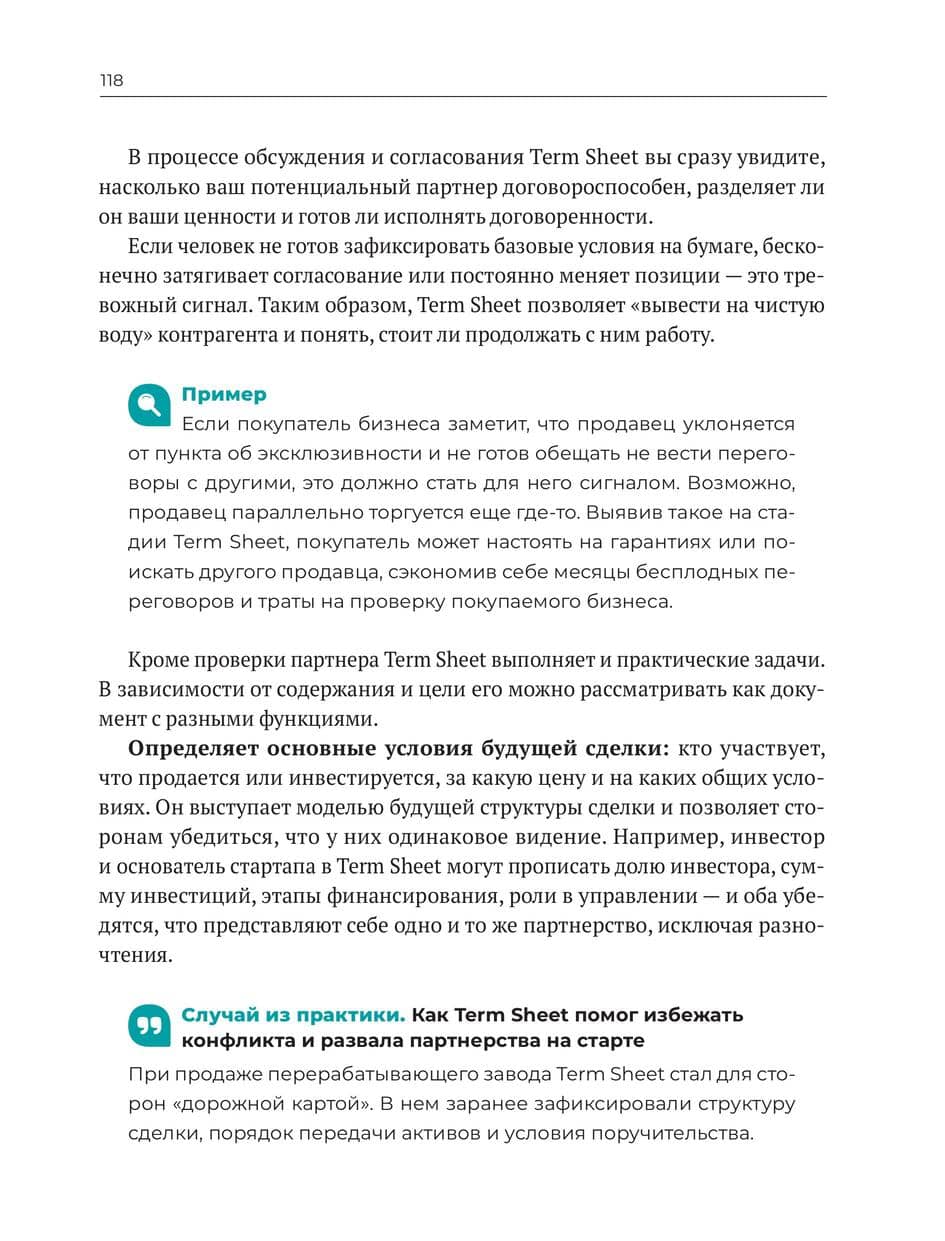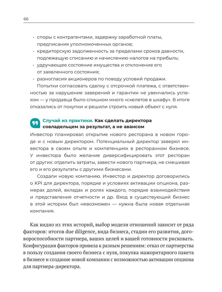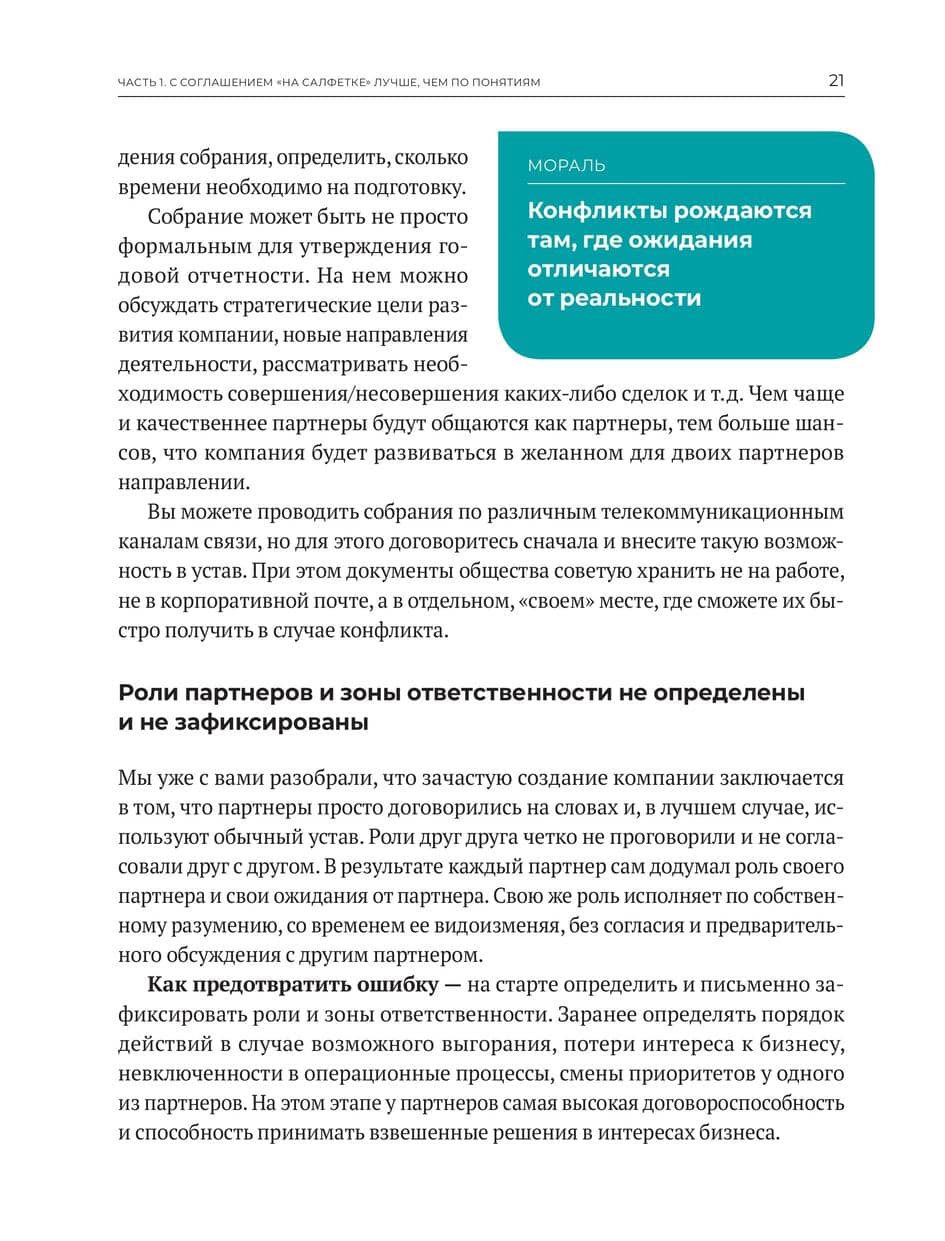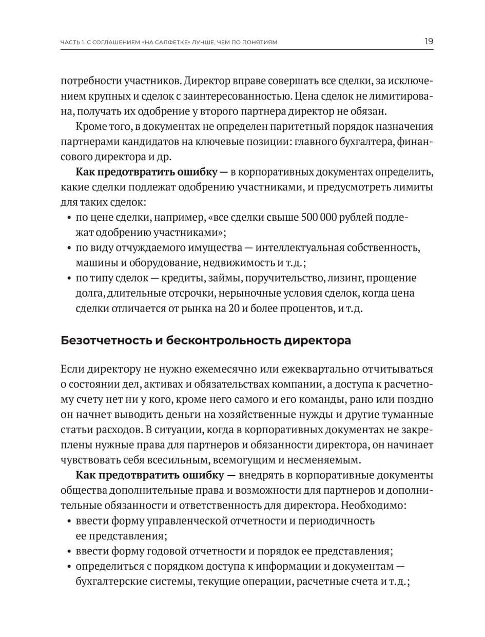 Эта книга - четкая карта маршрута от типичных конфликтов между совладельцами к безопасному бизнес-партнерству. Чек-листы и списки вопросов делают эту книгу рабочим инструментом: ее можно держать под рукой и реально использовать при работе над своим партнерством. Рекомендую всем, кто хочет строить долгосрочные отношения совладения бизнесом.